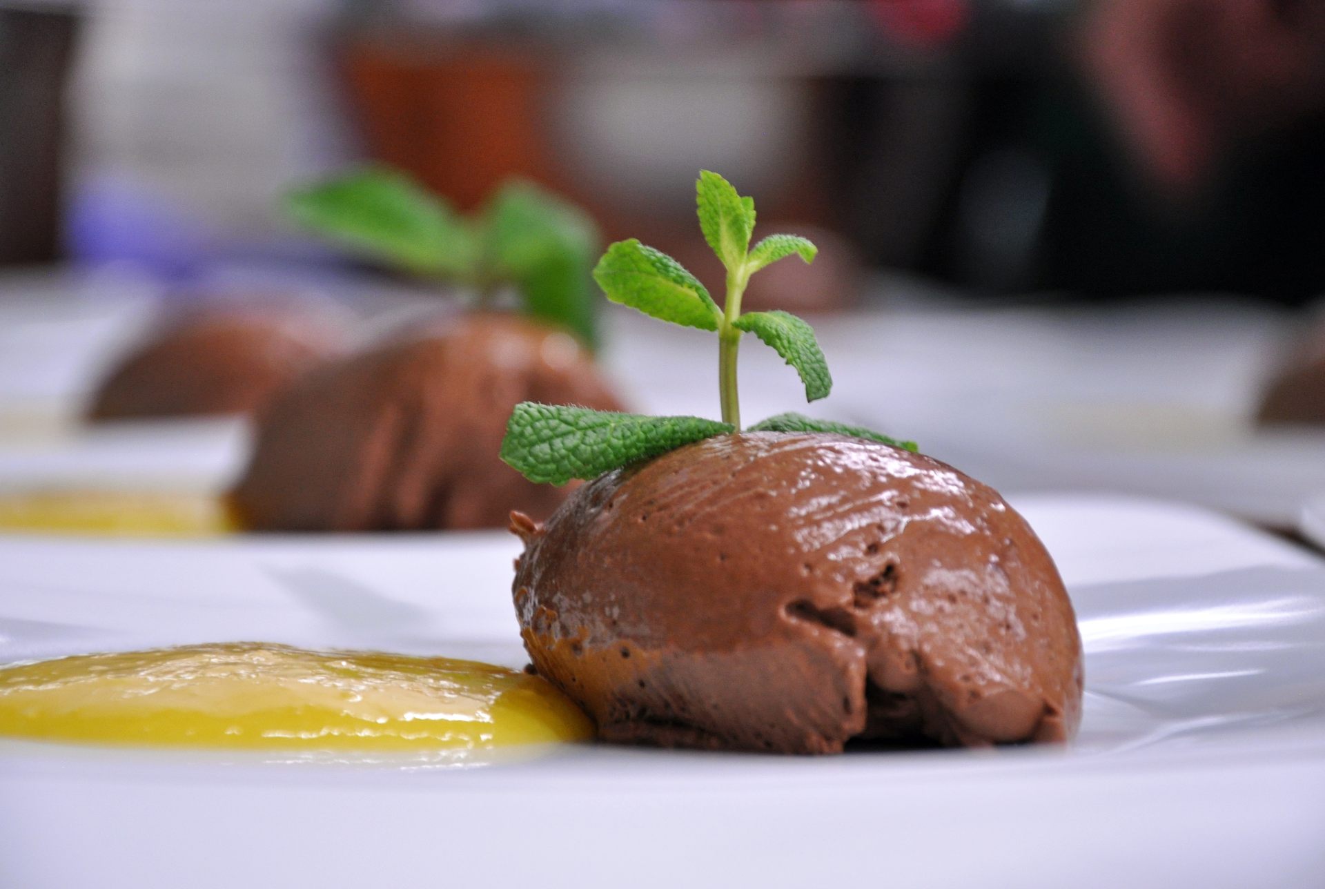 Mousse au Chocolat mit Mangopüree