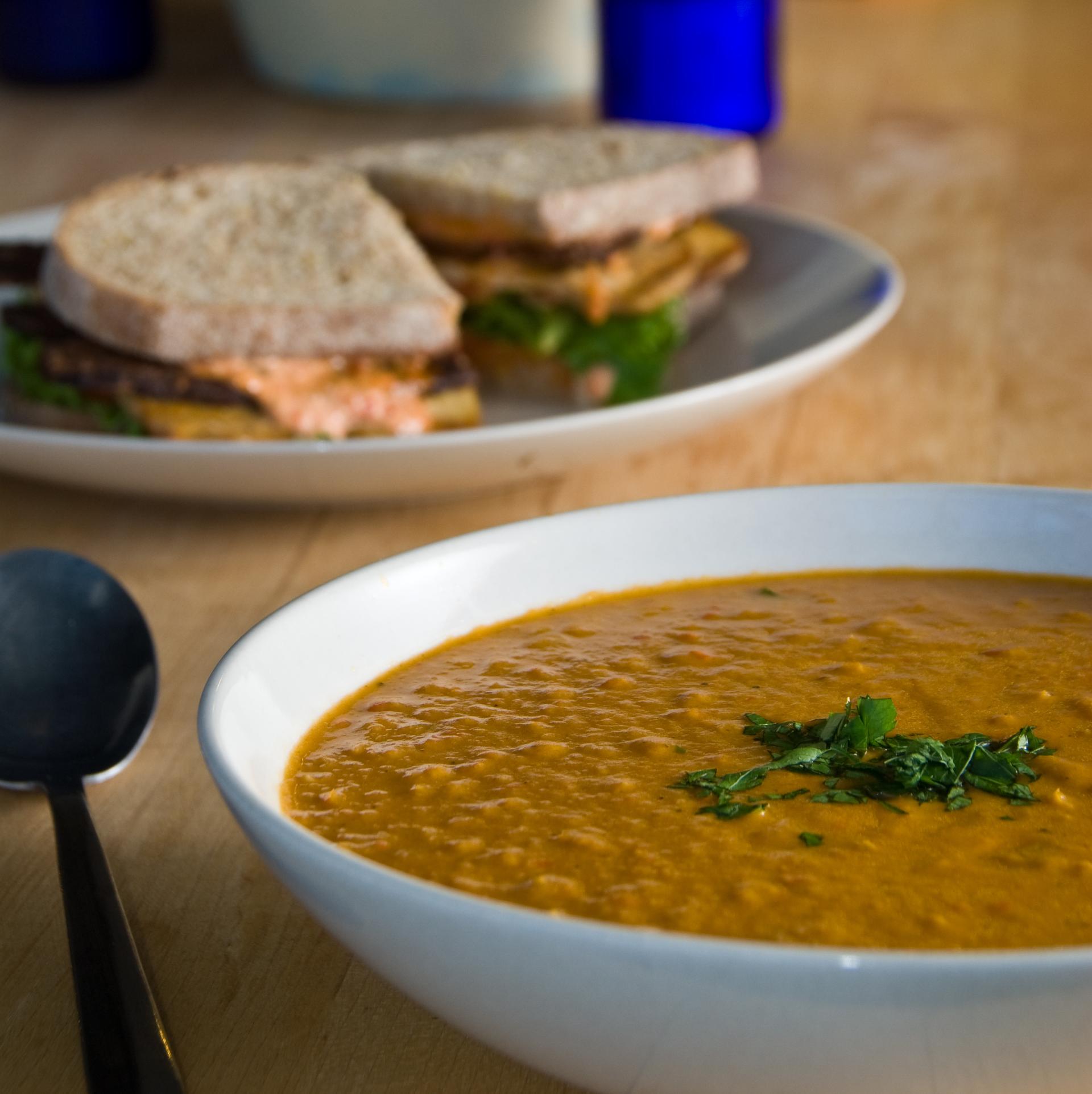 Den Eintopf 20–25 Minuten kochen lassen, bis das Gemüse und die Linsen weich sind. Die Gemüsebrühe hinzugeben und mit Salz, Pfeffer, Majoran und etwas Essig würzen.